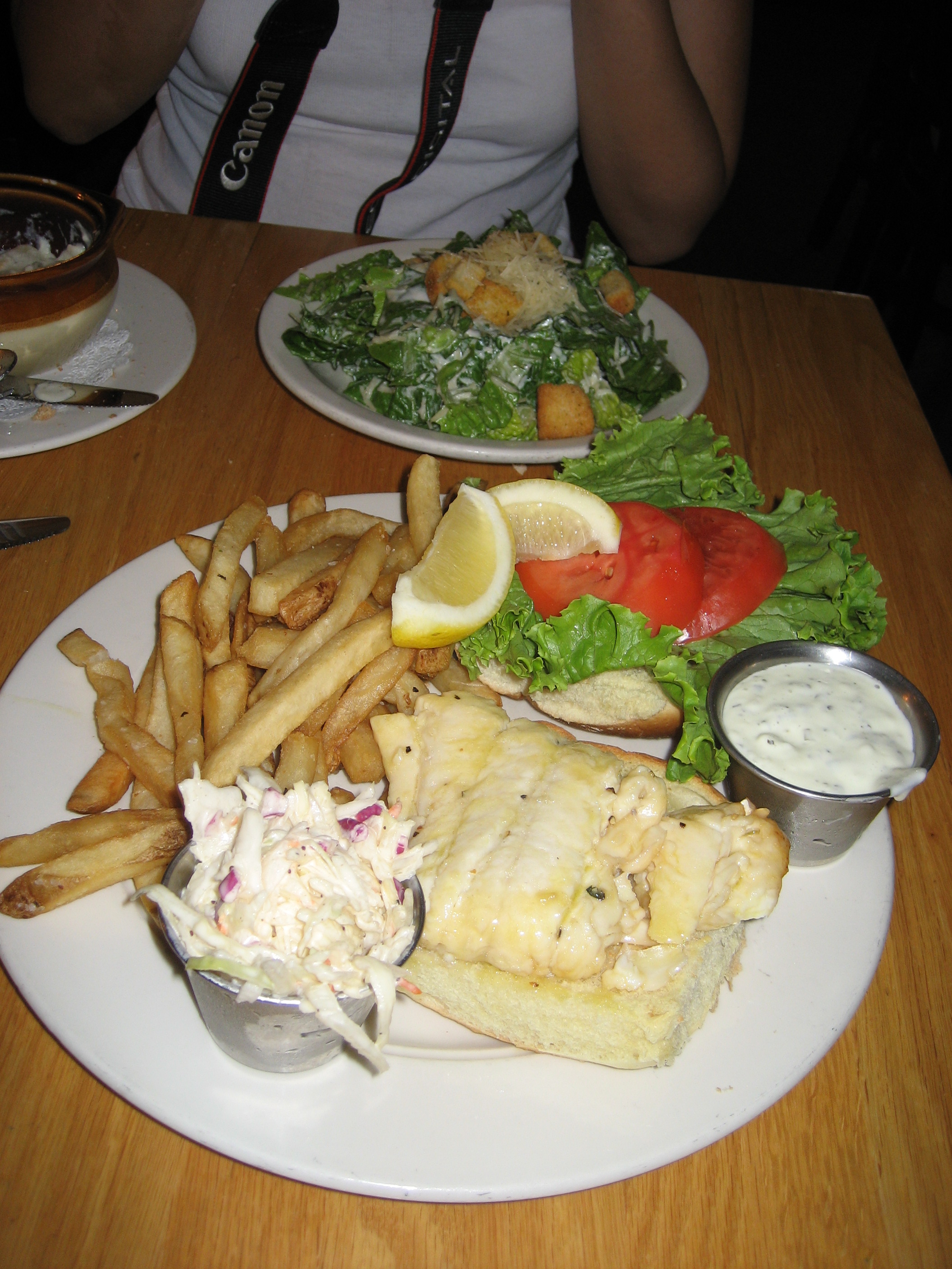 We went here after being disappointed by Dockside. First thing…it had air conditioning! That made everything taste a little better. Garwood’s is a little fancy with table clothes and cloth napkins. It was 1pm on a Wednesday and it seemed like we were on the back end of the lunch rush. I’m guessing because of that, there were key menu items unavailable. Disappointing. But we found substitutes and ordered. The sautéed haddock was light, flakey and delicious. French fries and cole slaw were better than normal. Finally, some mussels for appetizers were ok. It was expensive though. Lunch for two was almost $40. Maybe better for a nice dinner out. They do have a bar area with TVs and a view of the water.
